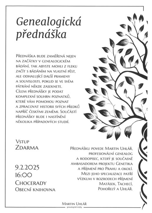 V lednu jsme v knihovně uspořádali poutavou a hlavně fundovanou přednáškou o genealogii. Profesionální genealog a rodopisec Martin Uhlář nás svižně a zábavně provedl základy genealogického bádání. Knihovna praskala ve švech a věřím, že všichni odcházeli spokojení, plni nových poznatků a podnětů a také chuti pátrat po osudech svých předků.