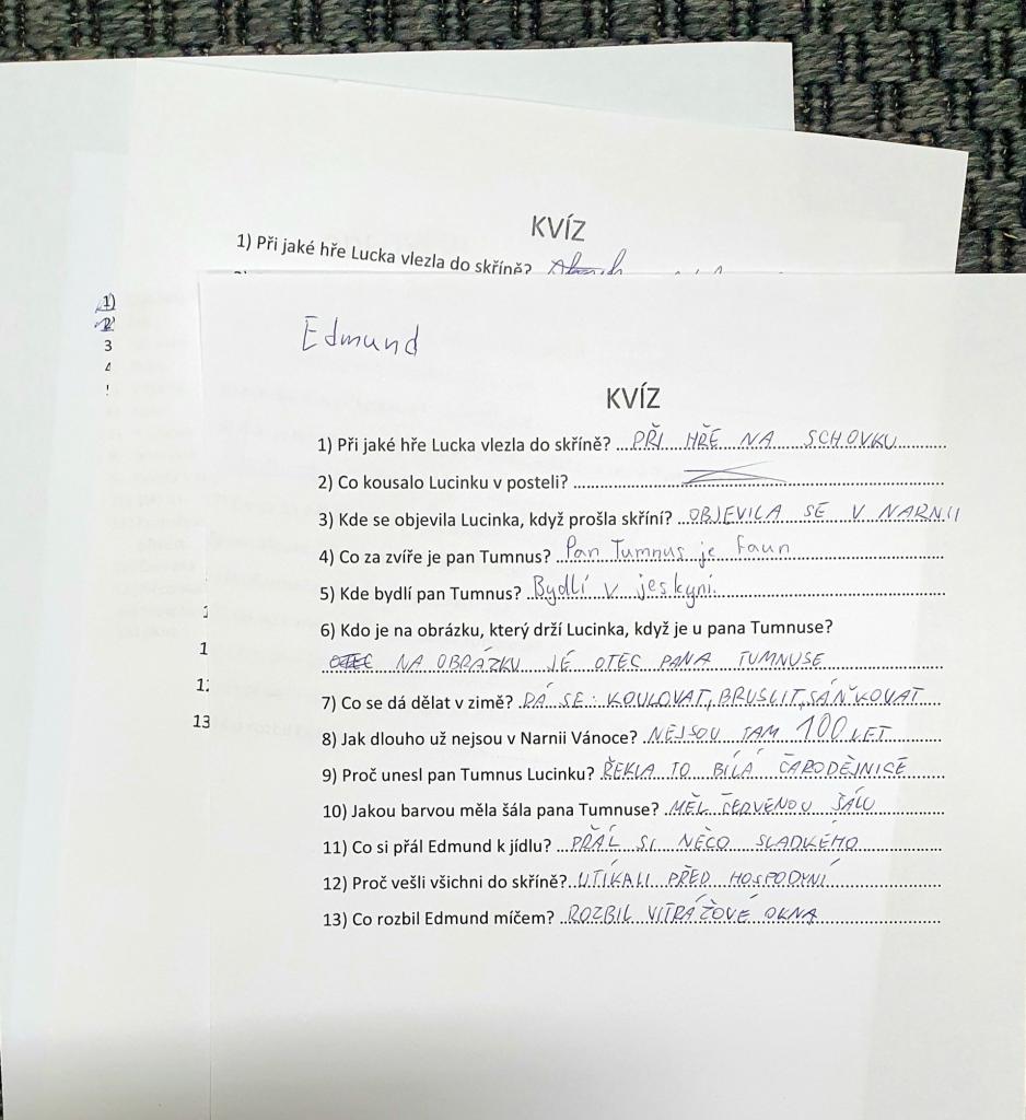 Květnová Noc s Andersenem proběhla v duchu legendární knižní série Letopisy Narnie od C. S. Lewise. Děti si poslechly ukázku z knihy a zhlédly úvodní část filmu, na kterou navazoval kvíz. Pak spolu se svou družinou prošly skříní a v Narnii splnily 4 náročné úkoly - vymýšlely a hrály ukolébavku, vyráběly kouzelný lektvar, střílely z luku a nakonec se v závěrečné bitvě utkaly s nepřáteli a slavně je porazily. Za odměnu je král Petr pasoval na krále a královny Narnie (a nechyběly ani narnijské sladkosti). Obrovský dík patří slečnám z nejstaršího čtenářského klubu, které celou hru, včetně pozvánek přichystaly.