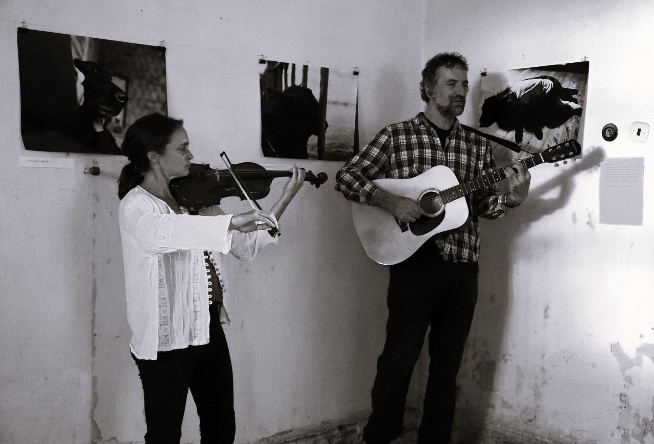 Veliký podíl na neopakovatelné atmosféře vernisáže výstavy měli Karolína Vančurová a Martin Šmíd, kteří zpříjemnili divákům vizuální zážitek překrásným hudebním doprovodem.