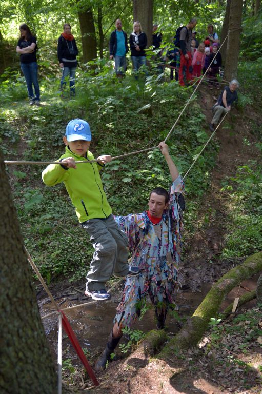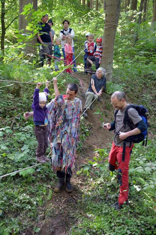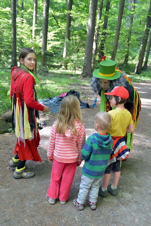 Chystal se hezký den, a tak po minulých deštivých ročnících začaly přípravy na ten devátý v nedělním ránu 17. května celkem zvesela. Radost nám sice trochu pokazila rodinka, která během dopoledne procházela lesem a připravenou trasu začala rozebírat, ale naštěstí se vše včas napravilo. Podobných problémů se vždycky trochu obáváme, protože spoustu věcí – rekvizit, kulis atd. – necháváme v lese bez dozoru, jinak to nejde, ale zatím jsme žádné ztráty neřešili.