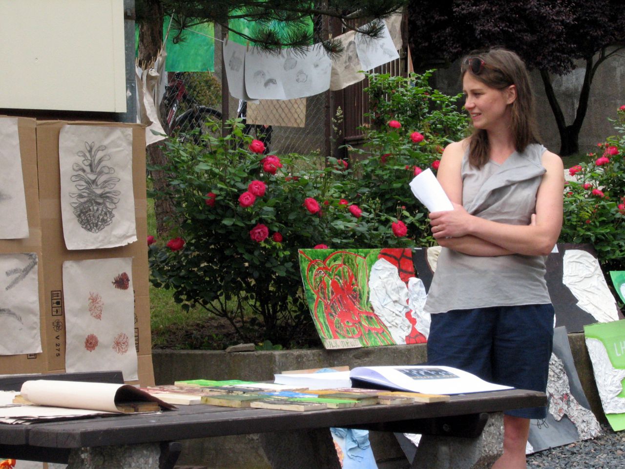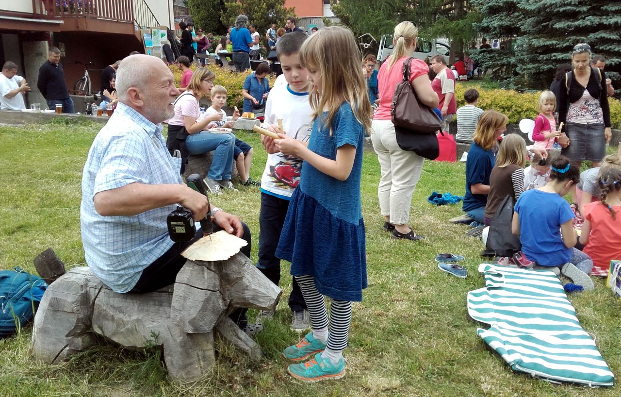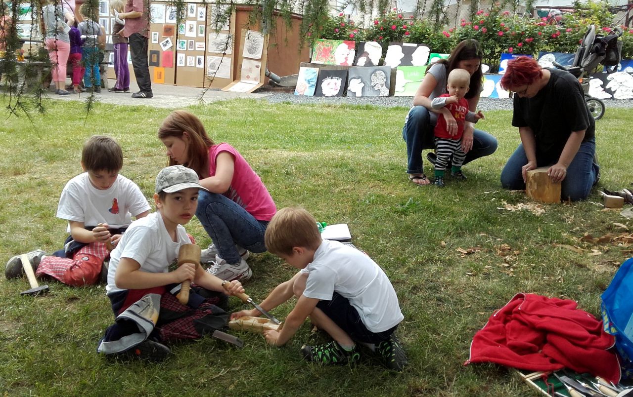 Sobotní program sympozia zahájila vernisáž výstavy prací dětských i dospělých studentů ZUŠ J. Suka Benešov, po které následovala výtvarná dílna pro děti. Děti i dospělí pod vedením Miroslavy Bažantové vytvořili nádherná díla, většinou také inspirovaná lesem a přírodou. Výtvarné práce byly rozmístěny na volném prostranství mezi dětským hřištěm a školou, návštěvníci mohli nalézt pod skutečnými stromy keramické nebo šité houby, na plotech byly rozvěšeny malby a mezi obrázky se dalo narazit na právě tvořícího sochaře …