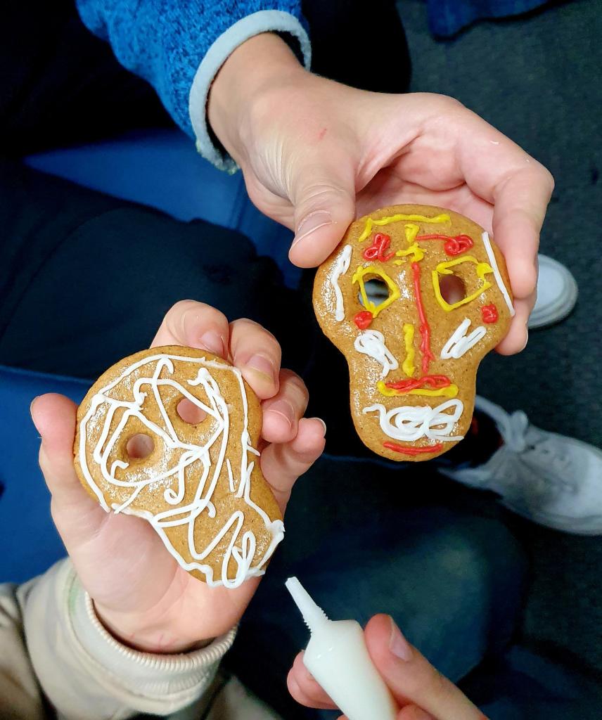 Četli jsme si a sami vymýšleli krátké horory, složené z pouhých dvou vět. Pouštěli animované strašidelné příběhy, zdobili perníkové lebky, skládali krabičky-rakvičky a malovali si vzájemně masky na obličej. Nejděsivější byla ovšem strašidelná cesta na starou faru, kde duchové z dávných časů zanechali stopy, a ze které se bez splnění úkolů nedalo uniknout. Nakonec se to naštěstí podařilo všem.
